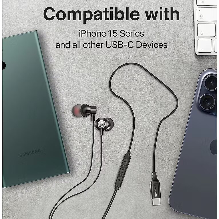 Enjoy deep bass response and finely tuned acoustics with Silken-C, in-ear wired earphones with a USB-C connector