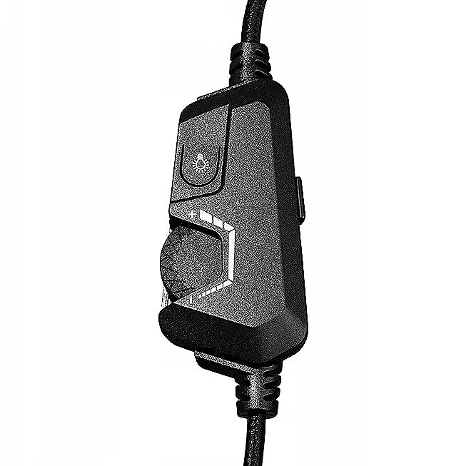 The headphones connection to the computer. A cable for a long-term and stable sound experience is the most popular type of connection.