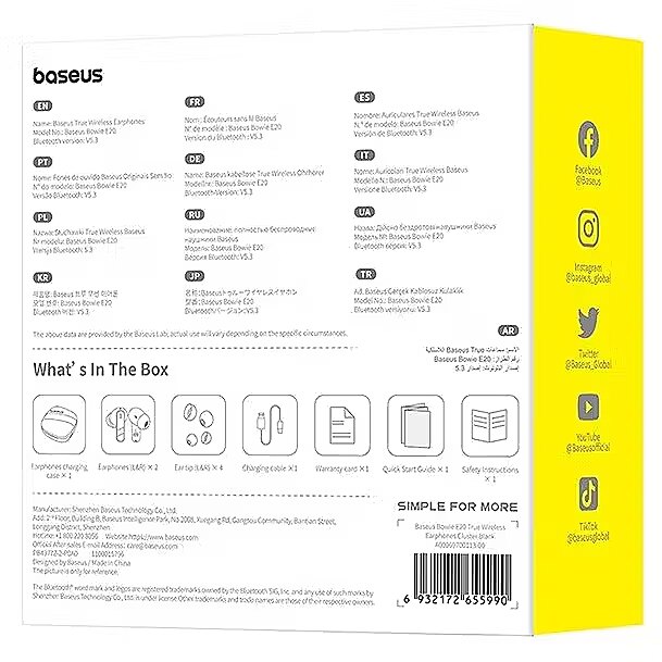 productName - Baseus Bowie E20 Headset Wireless In-ear Calls/Music Bluetooth Black