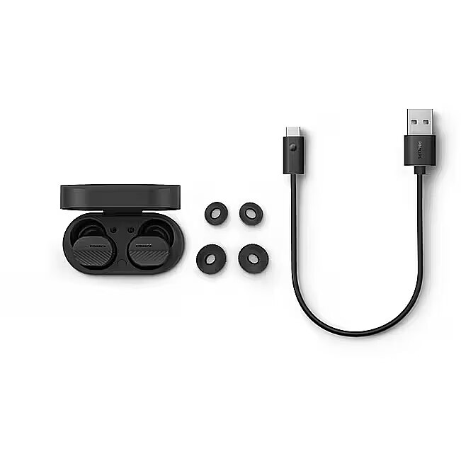 LongDesc - Immerse freely with Adaptive Noise CancellingAdaptive noise cancellation automatically reacts to your surroundings to suppress external noise, including wind, in real time. To hear what's going on around you, simply tap an earbud to activate Awareness Mode. Or activate Quick Awareness to enhance voices and have a conversation without removing an earbud.6 mic technology. Clearer calls, even in crowded placesIf you're on a call, our six-mic setup and a noise-reduction algorithm will combine to pick up the sound of your voice and quieten background noise. Even if you're in a busy café, your voice will come through clearly and the person you're speaking to won't need to listen to all of the other conversations going on around you as well!Up to 40 hours of play time. Pocket-sized charging caseWith noise cancelling off, you get 10 hours of play time from a full charge and an extra 30 hours from the pocket-sized charging case (with noise cancelling on, you get 7 hours and an extra 21 from the case). For a quick boost, 15 minutes of charging gives you an extra 3 hours. The case can be charged via USB-C.Stable Bluetooth multipoint connection and easy pairingBluetooth 5.4 brings you a steadier connection, and these earbuds work with devices that support the LC3 codec to give you noticeably better sound. You can connect to two Bluetooth devices at once and manage connected devices via the Philips Headphones app. Android users can also use Google Fast Pair, and Windows users can use Microsoft Swift Pair.IPX5 water resistantAn IPX5 rating means that these buds don't mind a drop of rain or even a downpour. Wearing them on a particularly hot day? They won't mind if you sweat either.Reliable in-ear fit and earbud touch controlsTextured silicone eartips help the earbuds stay comfortably in place, and you get three different sizes for the perfect fit. Touch controls on the earbuds keep things simple, and you can customise how these controls are set up via the Philips Headphones companion app.Philips Headphones app. Control noise cancelling and moreAs well as customising the earbud touch controls, you can use our companion app to personalise noise cancelling, turn auto wind-noise reduction off and adjust the level of transparency when using Awareness Mode. You can also use the app to get the latest firmware and more!Warm, detailed, natural. Philips sound signatureFrom music to podcasts, you'll enjoy detailed, natural sound with rich bass as the graphene-coated drivers reproduce every sparkling high and weighty low. Android or iOS, you can go big on the sounds that get you going!Responsible design and packagingWe're continually working to make our supply chain more sustainable and transparent. Our plastic-free packaging uses FSC-certified recycled cardboard and soy-based ink.