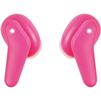 Large, round control buttons on the earcups make the headphones easy to use, while soft ear cushions ensure comfortable wear. The padded headband is adjustable for a perfect fit, and dots on the back indicate which way to put the headphones on. The headphones can be folded flat or flat and inward for easy storage when not in use. Clear calls with friends and family
