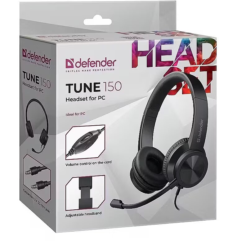 Description - Tune 150 Computer Headset with Microphone. Lightweight headphones featuring an adjustable headband, soft ear cushions, and volume control.