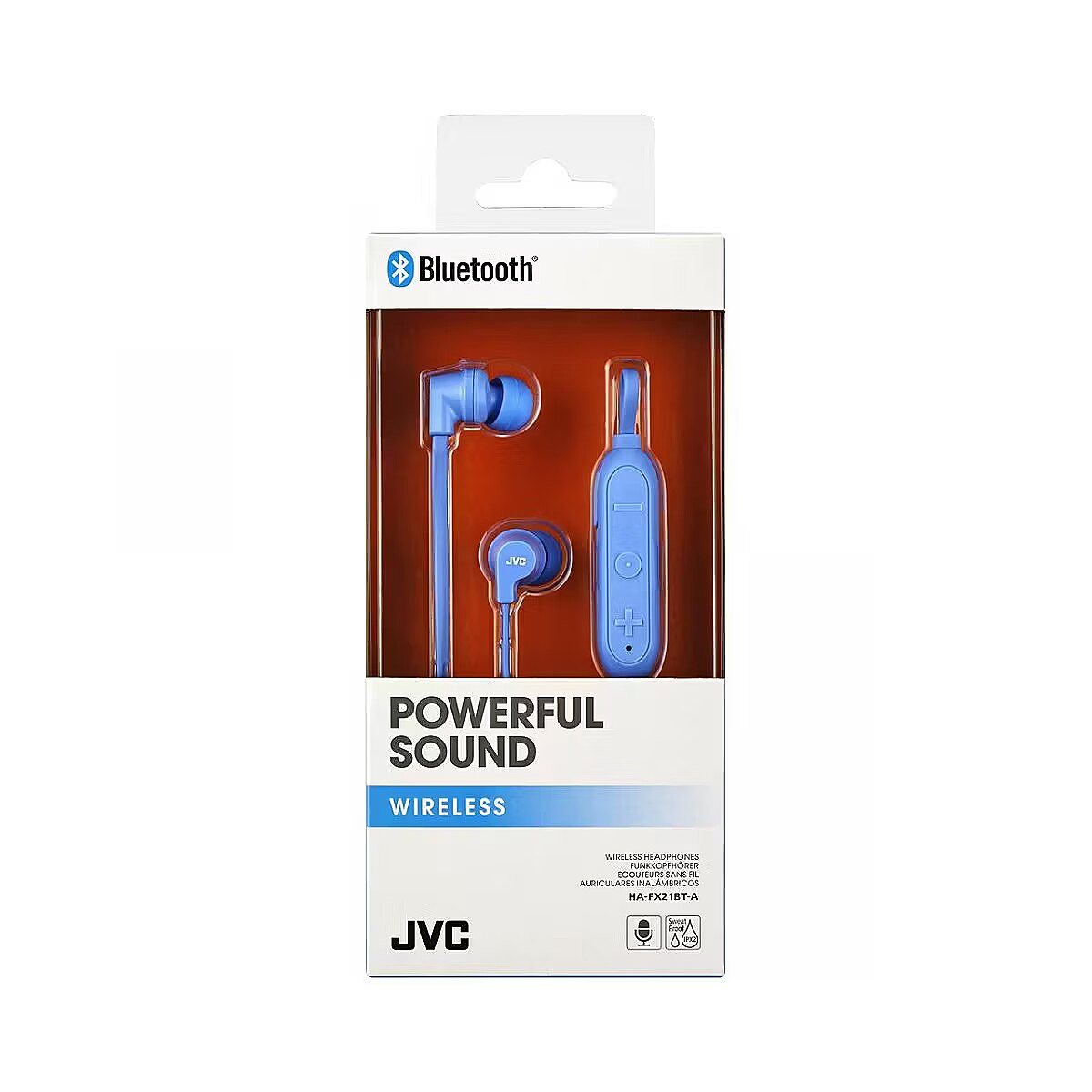 LongSummaryDescription - JVC HA-FX21BT-AE Colourful wireless inner-ear headphones. Product type: Headset. Connectivity technology: Wireless, Bluetooth. Headphone frequency: 20 - 20000 Hz. Wireless range: 10 m. Weight: 11 g. Product colour: Blue