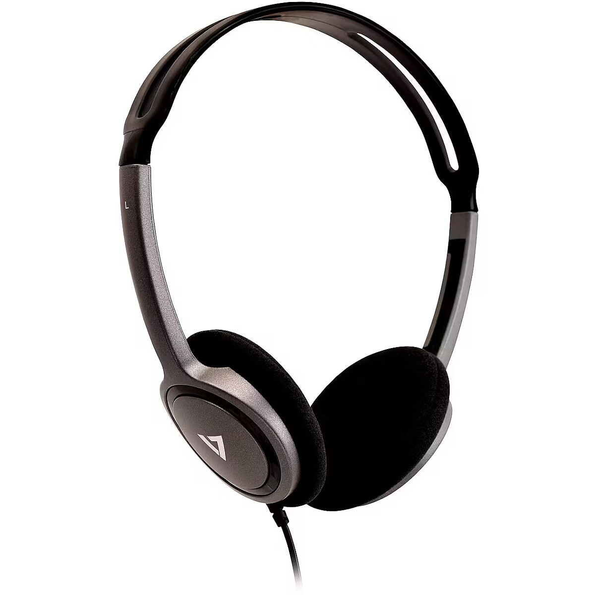 LongDesc - The Lightweight Headset from V7 delivers incredible audio performance in an ultra-light design. It features an adjustable headband, and soft ear pads for comfort during extended use. The headset boasts 30 mm audio drivers for outstanding audio clarity. The Lightweight Stereo Headset is great for PCs, notebooks, or other portable audio devices in your home, office or classroom. Additionally it easily connects to most audio devices through a 3.5 mm connector.