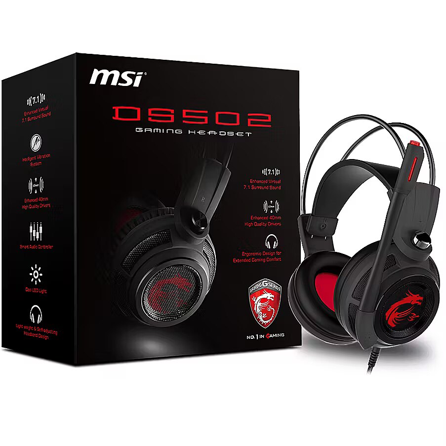 LongDesc - High Quality Speakers- DS502 built with two large 40mm drivers for quality audio- High quality speakers provide high, medium, and low frequency in detailsErgonomic DesignLightweight and self-adjusting headbandDS502 GAMNING Headset is comfortable on your head and ears for extended gaming sessions. Its fully adjustable headband and closed ear cups with plush padding ensure a perfect fit every timeNoise ReductionImproved Noise Reduction- DS502 built with two large 40mm drivers for quality audio- High quality speakers provide high, medium, and low frequency in detailsVibration SystemStrong vibration system- Strong vibration system provides optimal gaming and audio experienceErgonomic DesignOmnidirectional Microphone- Adjustable omnidirectional microphone leave no room for miscommunication- Crystal clearaudio reproduction with balanced natural sounding tones, and little background noise pickupRemote Controller- High quality speakers provide high, medium, and low frequency in detailsNoise Reduction7.1 Surround Sound- Featuring Xear™ Living technology , MSI DS502 brings your game to lifePowerful Cmedia Technology and DS502 software- Change or fine-tuned via DS502 Headset Software to find your best sound fieldXear™ Living technology gives the digital speaker playback quality a new standard. By virtually shifting the speakers into right places, managing the frequency signal to optima level, each speaker using this technology reaches to the highest sound quality levelCmedia Xear Technology7.1 Virtual Speaker Shifter- Expanding/upmixing audio to 7.1- channel surround sound- Virtualizing 7.1 surround sound over any set of speakers- Shiftable virtual speaker positioning allows you to adjust the best sound field easily without moving physical speakers and wiresEnvironment Reverb- There are 27 global environment effects including bathroom, concert hall, under water, music pub, etc. environment effects can be used to create realistic listening experiences that imitate different environments. Environment Size can be customized to Small, Medium and Large10-Band Equalizer- 10-band software equalizer with 12 preset modes is provided. The full audio band is divided into 10 different frequency bands. Equalizer typically will adjust the energy levels of the audio data in one or more different frequency bands in order to change the characteristics of the audio dataSurround Max- Upmix stereo music contents to Max. speaker settings (max.7.1CH) or convert to surround sound contexts for HP or Speaker surround virtualization technology above. This function creates immersive surround sound fields even with stereo audio sourcesXear™ SingFx- Pitch Shifting:Pitch Shifting can help users to change their natural “key” to match the song’s- Vocal Fading:Vocal Fading can fade out the lead vocal voice inside the song that is great for karaoke related applications- Singing Echo:Singing Echo can generate natural echo effects on your singing voice just like a karaoke machine- Magic Voice:Magic Voice is a great feature for disguising your voice (using monster/cartoon/male/female effects) for VOIP and online gaming applications