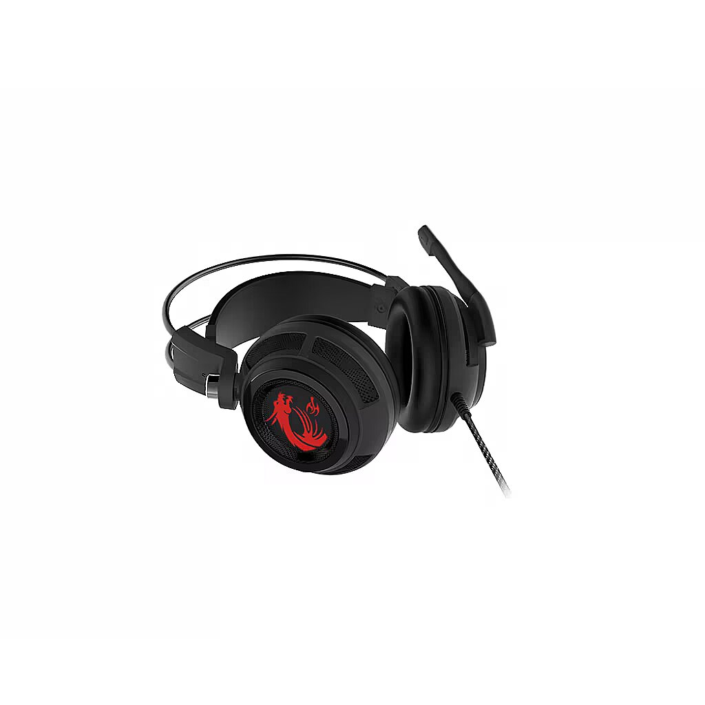 Title - MSI DS502 7.1 Virtual Surround Sound Gaming Headset 'Black with Ambient Dragon Logo, Wired USB connector, 40mm Drivers, inline Smart Audio Controller, Ergonomic Design'
