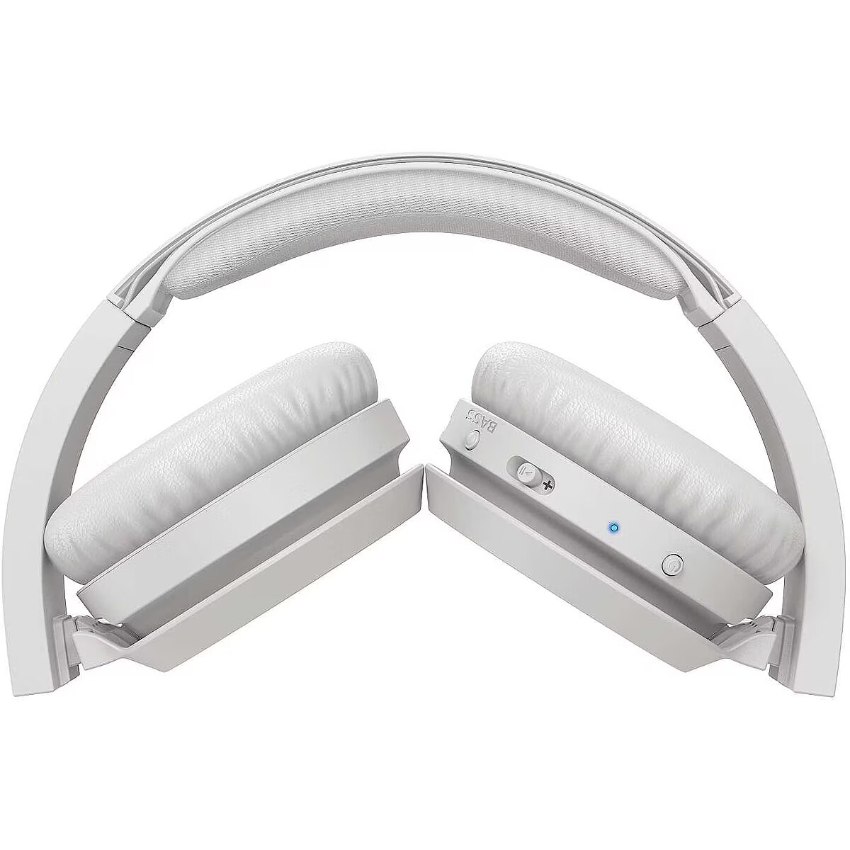 LongDesc - Feel that bassRock your sounds with bigger bass. These wireless on-ear headphones boast a BASS boost button, so you can pump it up whenever you like. You get up to 29 hours of play time, quick charging and stylish matte colours to choose from.BASS boost button. Stronger bass at the touch of a buttonThese on-ear headphones boast powerful 32 mm neodymium acoustic drivers that give you crisp sound and rich bass. When you want more, simply press the BASS boost button and you'll feel the difference instantly.29 hours of play time. USB-C chargingYou get up to 29 hours of play time from a 2 hour charge via USB-C. If you start running low on power, a quick 15 minute charge will keep the music playing for another 4 hours.Lightweight, adjustable cushioned headbandAvailable in stylish matte colourways, these on-ear headphones boast a cushioned headband that's so light you'll barely feel it. The soft ear cups are clearly marked for left/right ears and can be angled until they feel just right.Flat-fold design for easy storageRoll with the bass. The ear cups fold flat and swivel inwards for easy storage in your pocket or bag. Just fold them up and you're ready to go.Multi-function button. Easily control music and callsDon't like the current track? Skip it with a long press. Want to reject a call? A simple button press takes care of that. Smart Bluetooth pairing means these earphones remember the last devices they were paired with.Smart pairing. Automatically find Bluetooth devicesOne long press of the multi-function button gets these wireless Bluetooth headphones ready to pair. Once they're paired, the headphones remember the last device they were paired with.Compact foldable design for easy portabilityReal compact foldable, which is excellent for travel and lets you take your music anywhere.