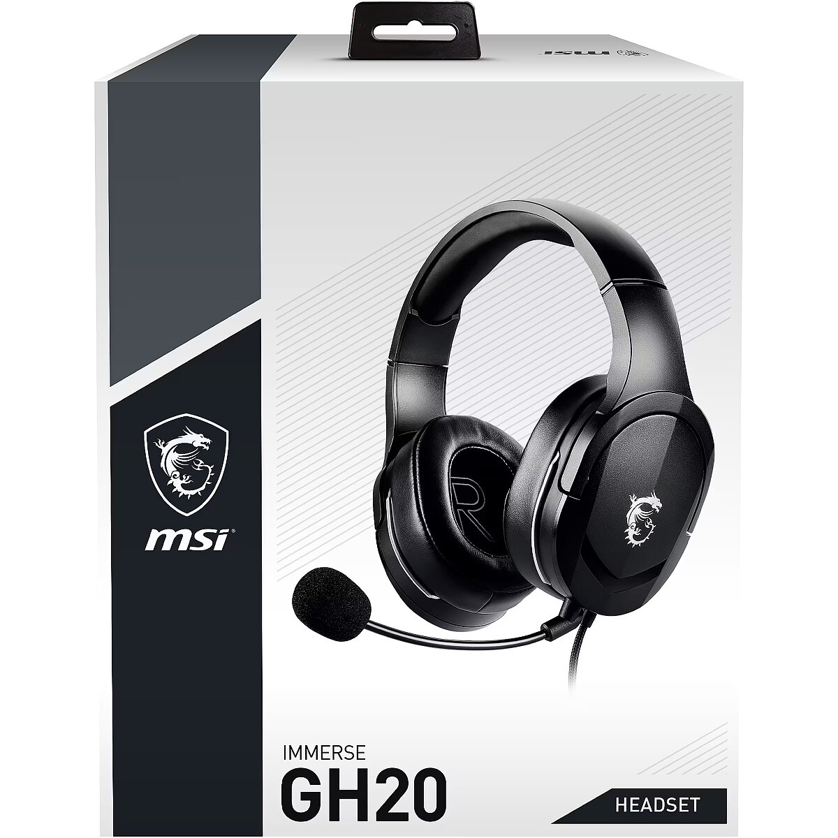ShortSummaryDescription - MSI IMMERSE GH20 Gaming Headset '3.5mm inline with audio splitter accessory, Black, 40mm Drivers, Unidirectional Mic, PC & Cross-Platform Compatibility', Wired, Gaming, 20 - 20000 Hz, 245 g, Headset, Black