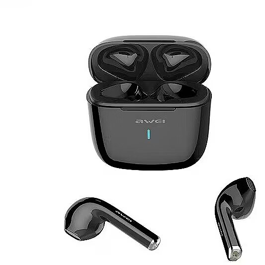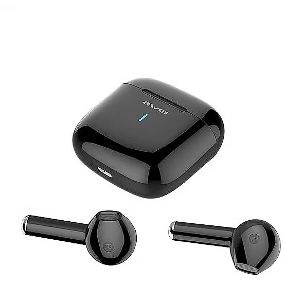 Description - AWEI T26 ergonomic, wireless headphones with charging station. Compact design full of advanced technology, from active noise reduction, sound quality to intelligent voice. Thanks to the perfect nanomaterials, the headphones have IPX4 waterproof protection. From now you don't have to worry about rain and then during use. Thanks to the built-in touch panel, the size and weight of the headphones have been significantly reduced, and you can conveniently control them by touch. Bluetooth 5.0 will allow you to seamlessly connect to your smartphone. Specification: Bluetooth version: 5.0 Talk time: up to 3.5 hours Music listening time: up to 3 hours Charging time: 1 hour Standby time: Up to 300 hours Bluetooth range: 10 m. Battery capacity of the charging station: 600 mAh Battery capacity of one handset: 35 mAh Speaker: 13mm Water resistance: IPX 4