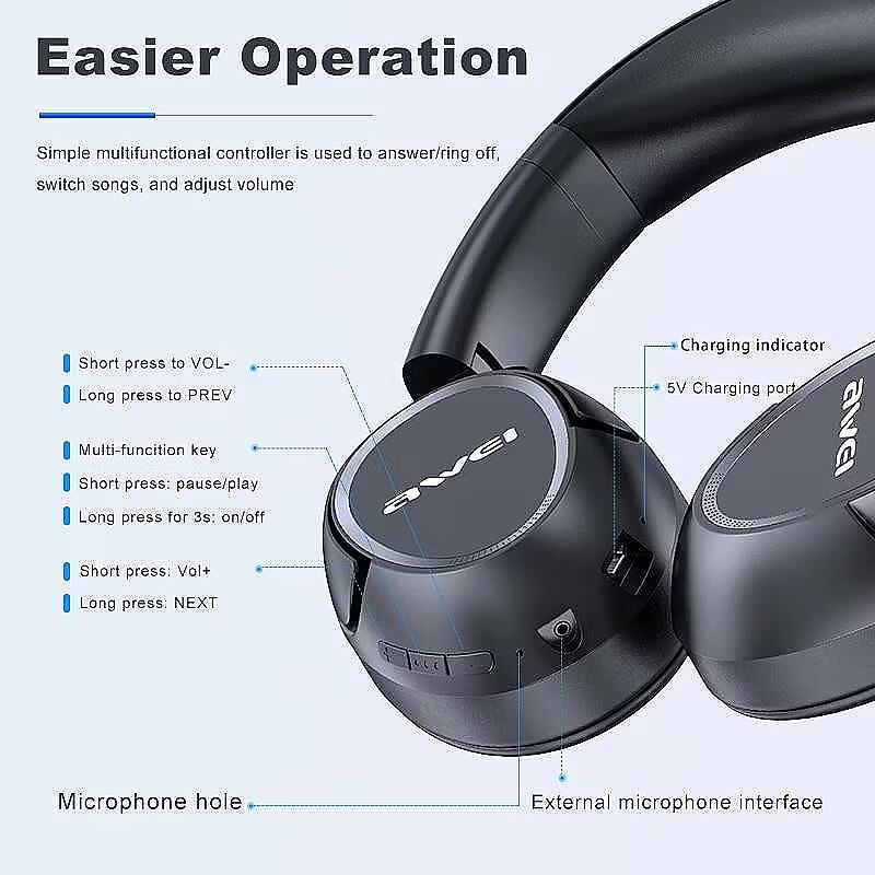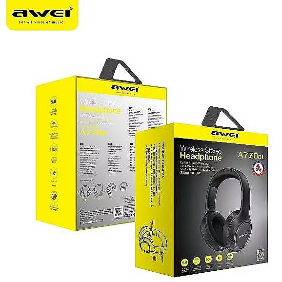 Description - Awei A770BL Sport Wireless Stereo Foldable Headset Bluetooth Gaming Headphone With Mic Specifications: Bluetooth Version: 5.0 Protocol: HFP/A2DP/AVCTP/AVRCP Talk Time: 13 h Play Time: 12 h Charging Time: 1 h Input Voltage: DC/5V/300mAh Working Frequency of Bluetooth: 2402MHZ-2480MHZ Working Temperature: -40/+85 Transmission Distance: 10M Battery Capacity: 250mAh Driver Unit: 40MM Sensitivity: 122d3dB Impedence: 3215% Frequency Response Range: 20-20KHZ