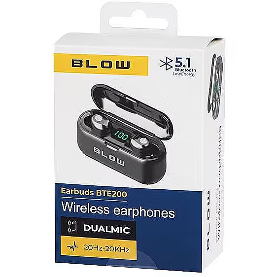 Description - Słuchawki BLOW Earbuds BTE200 z mikrofonem i powerbankiem Technologia Bluetooth w najnowszej wersji 5.1 Automatyczne parowanie słuchawek Etui do przechowywania i jednoczesnego ładowania Czas odtwarzania muzyki do 6 godzin Pojemny powerbank o wielkości 2000mAh Czas ładowania słuchawek od 1,5 do 2 godzin Czas gotowości do pracy do 150 godzin Nowoczesne, praktycznie i niezawodne słuchawki BLOW BTE200 to najnowsza seria słuchawek, które są idealnym rozwiązaniem dla każdego kto ceni sobie komfort i jakość. Earbuds są małe i lekkie dzięki czemu idealnie dopasowują się do ucha a wielogodzinne użytkownie nie powoduje żadnych dolegliwości.  Bezprzewodowa łączność Bluetooth 5.1