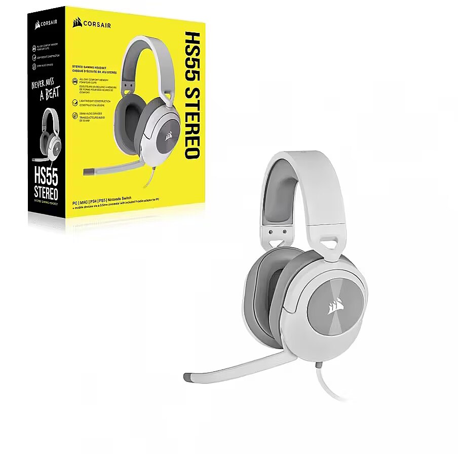 Description - HS55 Stereo Headphones READY TO PLAY The HS55 STEREO is lightweight yet durable, so you can wear it comfortably for hours of gaming. COMFORT Comfortable earmuffs with soft memory foam and artificial leather. LIGHTNESS It weighs only 273 g and is equipped with an adjustable headband and earmuffs. INTUITIVE CONTROL An on-ear cup volume knob and a flip-up mute microphone put control at your fingertips. REALISTIC SOUND High-quality, specially tuned 50 mm neodymium drivers reproduce excellent sound over a wide frequency range, so you'll hear everything you need on the battlefield. CRYSTAL CLEAR COMMUNICATION Captures your voice with incredible clarity thanks to the omni-directional microphone with flip-up mute. Discord certification guarantees crystal clear communication and excellent sound. WORKS WITH VIRTUALLY ANY DEVICE Easily connect to your computer, console or mobile devices with a 3.5mm audio jack.