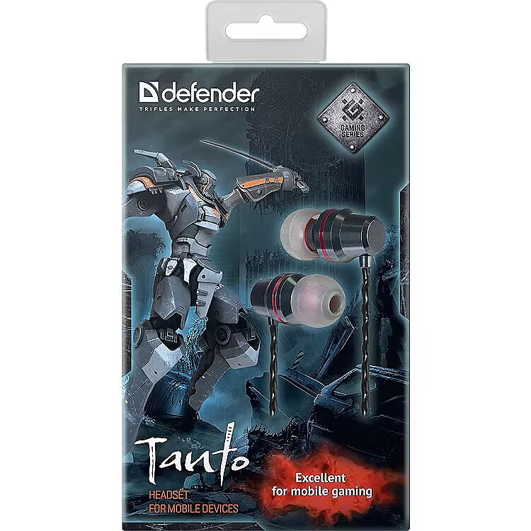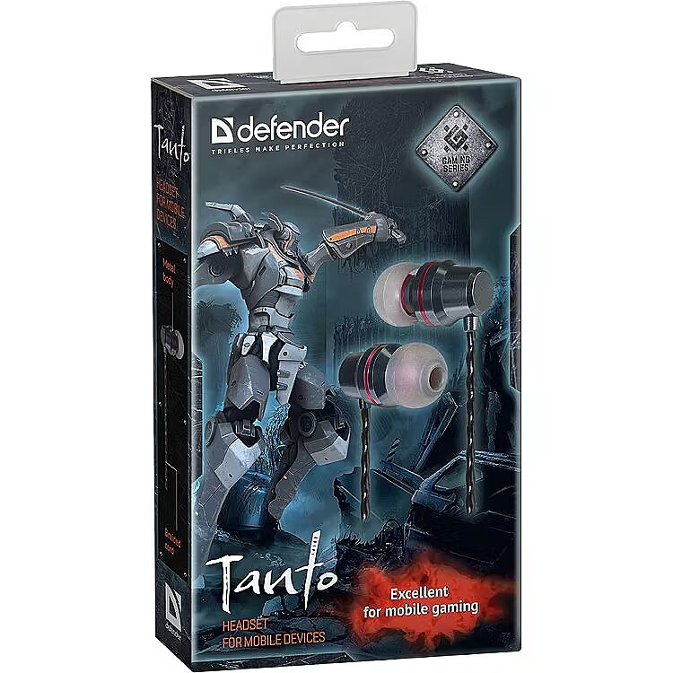 Description - DEFENDER IN-EAR HEADPHONES WITH MICROPHONE GAMING TANTO Perfect for mobile gaming Set for mobile phone or other mobile devices Universal volume control buttons for Android and iOS devices Good sound isolation Flat cable Metal casing