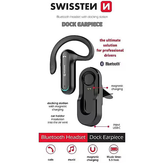 title_en - Swissten Dock Earpiece Bluetooth Headphone With Charger