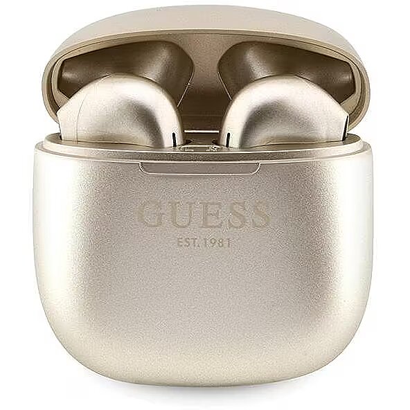 Description - Guess Classic EST Logo Bluetooth TWS headphones + docking station Experience a new definition of great sound quality and stylish design with these Guess ergonomic headphones. Their unique design provides an excellent visual experience and an advanced technology experience that will bring a whole new dimension to your favorite music, revealing hidden nuances and details you have not heard before. Docking station and powerbank in one Your headphones deserve the company of an equally versatile docking station. This station not only guarantees safe storage and charging of the headphones, but also acts as a portable power bank. With a capacity of 300mAh, you now have unlimited possibilities. Never again will you worry about running out of battery at the least opportune moment. It's more than just an accessory - it's an element that emphasizes the innovation of these headphones. Long working time The battery in the charging case allows for up to 35 hours of continuous music playing if you regularly charge them using the case. The large battery capacity - 300 mAh - allows you to charge the headphones seven times, which will allow you to use the headphones all day. A single use of the charged headphones allows for up to five hours of listening to music. The latest version of Bluetooth 5.3 is a promise of smooth connection and responsiveness. Your headphones are now perfectly synchronized with your smartphone, allowing you to instantly play music and take calls without delay. Thanks to this technological excellence, you stay connected to your favorite audio source in a way that was previously impossible. Excellent sound quality What really sets these headphones apart is their 13mm diaphragm. It's not just a number - it's transforming the way you experience sound. A diaphragm of this size revolutionizes the way you perceive every note and sound. Lows become deeper and highs become clearer, creating a spectrum of sounds that until now seemed impossible to achieve. It's like being transported into the middle of a concert or recording studio, immersing yourself in sounds in a way unimaginable before. These headphones are not only a sonic masterpiece, but also perfectly prepared for an active lifestyle. IPX6 protection means they're resistant to sweat and light rain, giving you peace of mind whether you're training outdoors or traveling. What's more, you can enjoy their excellent sound for an impressive 6 hours. That's enough time to fully immerse yourself in music, watching a movie or having a long conversation, without having to recharge frequently. The product is manufactured under the license of Guess.