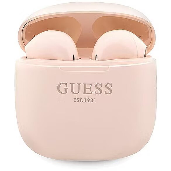 Description - Guess Classic EST Logo Bluetooth TWS headphones + docking station Experience a new definition of great sound quality and stylish design with these Guess ergonomic headphones. Their unique design provides an excellent visual experience and an advanced technology experience that will bring a whole new dimension to your favorite music, revealing hidden nuances and details you have not heard before. Docking station and powerbank in one Your headphones deserve the company of an equally versatile docking station. This station not only guarantees safe storage and charging of the headphones, but also acts as a portable power bank. With a capacity of 300mAh, you now have unlimited possibilities. Never again will you worry about running out of battery at the least opportune moment. It's more than just an accessory - it's an element that emphasizes the innovation of these headphones. Long working time The battery in the charging case allows for up to 35 hours of continuous music playing if you regularly charge them using the case. The large battery capacity - 300 mAh - allows you to charge the headphones seven times, which will allow you to use the headphones all day. A single use of the charged headphones allows for up to five hours of listening to music. The latest version of Bluetooth 5.3 is a promise of smooth connection and responsiveness. Your headphones are now perfectly synchronized with your smartphone, allowing you to instantly play music and take calls without delay. Thanks to this technological excellence, you stay connected to your favorite audio source in a way that was previously impossible. Excellent sound quality What really sets these headphones apart is their 13mm diaphragm. It's not just a number - it's transforming the way you experience sound. A diaphragm of this size revolutionizes the way you perceive every note and sound. Lows become deeper and highs become clearer, creating a spectrum of sounds that until now seemed impossible to achieve. It's like being transported into the middle of a concert or recording studio, immersing yourself in sounds in a way unimaginable before. These headphones are not only a sonic masterpiece, but also perfectly prepared for an active lifestyle. IPX6 protection means they're resistant to sweat and light rain, giving you peace of mind whether you're training outdoors or traveling. What's more, you can enjoy their excellent sound for an impressive 6 hours. That's enough time to fully immerse yourself in music, watching a movie or having a long conversation, without having to recharge frequently. The product is manufactured under the license of Guess.