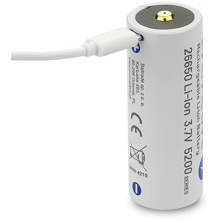 name - Rechargeble battery 26650 3,7V Li-ion 5200 mAh micro USB