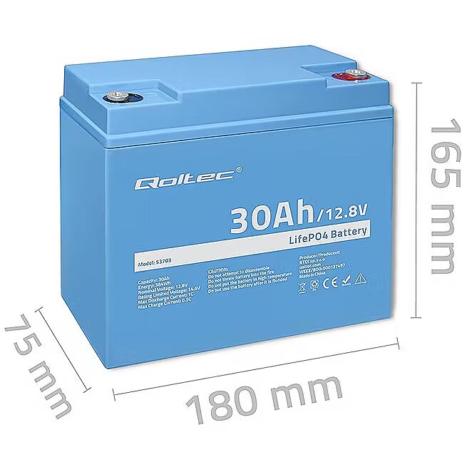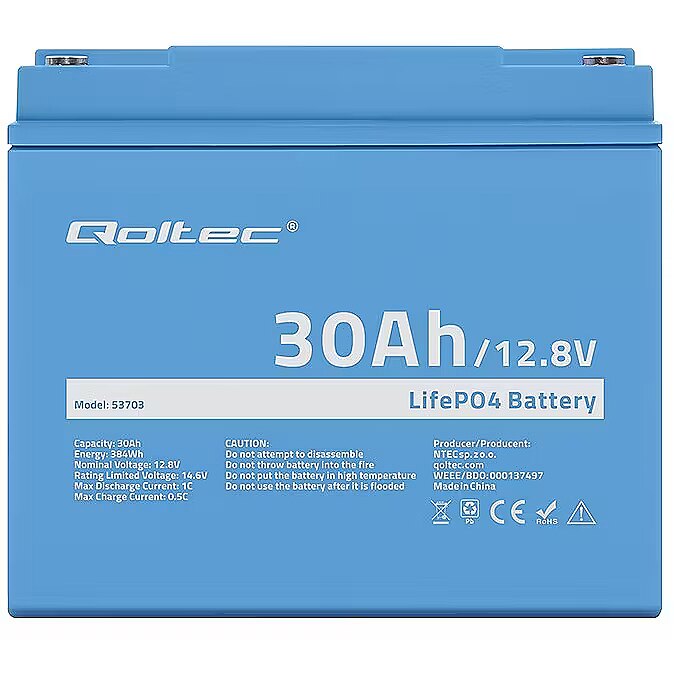 This product Qoltec LiFePO4 battery 12.08V, 30Ah, 384Wh, BM