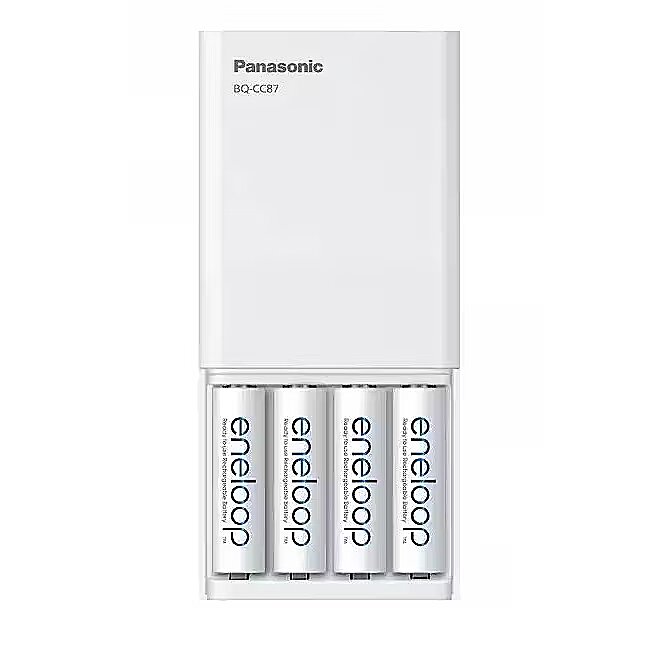description_en - Panasonic Eneloop BQ-CC87 is a unique combination of a charger and a power bank. Its traditional function allows you to charge NiMH type R6 / AA or R03 / AAA batteries using four independent channels. The device is powered by a USB cable, which allows you to charge the batteries via a network adapter (e.g. from charging a smartphone).