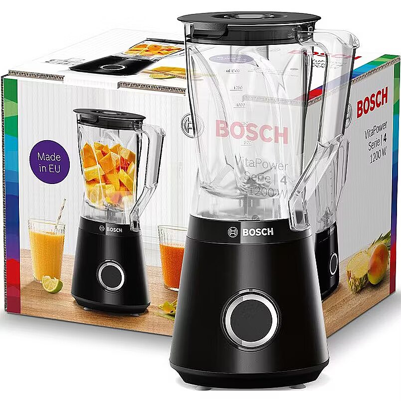 LongDesc - Bosch motor expertise: high power and speed with 1,200W motor and up to 30,000 rpm motor speed.Easy storage and cleaning: dishwasher-safe parts and cable storage compartment.Quality from European Bosch factory: durability, reliable design and high-quality materials.ProEdge blades: consistent results thanks to effective and durable rust-proof blades.Tritan mixing container with 3D FlowBooster lines: 1.5l container, shatterproof and taste-neutral like glass, but lighter.