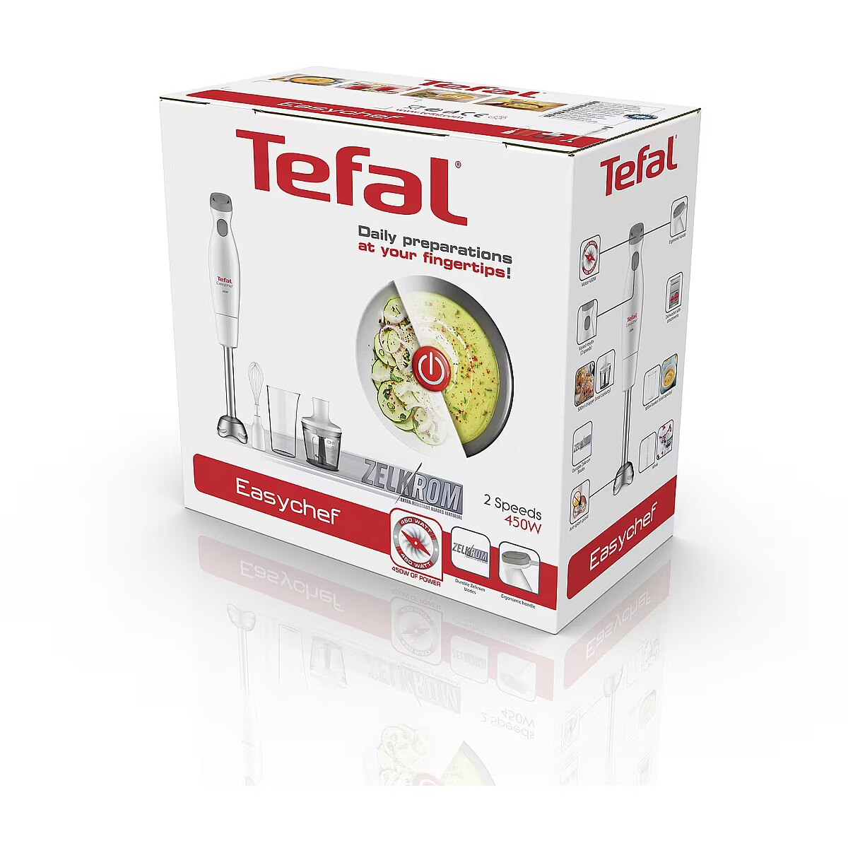 MediumDescription EN - The Tefal Easychef Handblender ensures perfect results on a wide variety of delicious recipes, with convenient features designed to make cooking easier every day. 450W of power provides quick and efficient performance, with high-quality blades for smooth and homogenous results and two speed settings to cover all your cooking needs. • Easy-to-use handblender designed for effortless daily use and perfect results