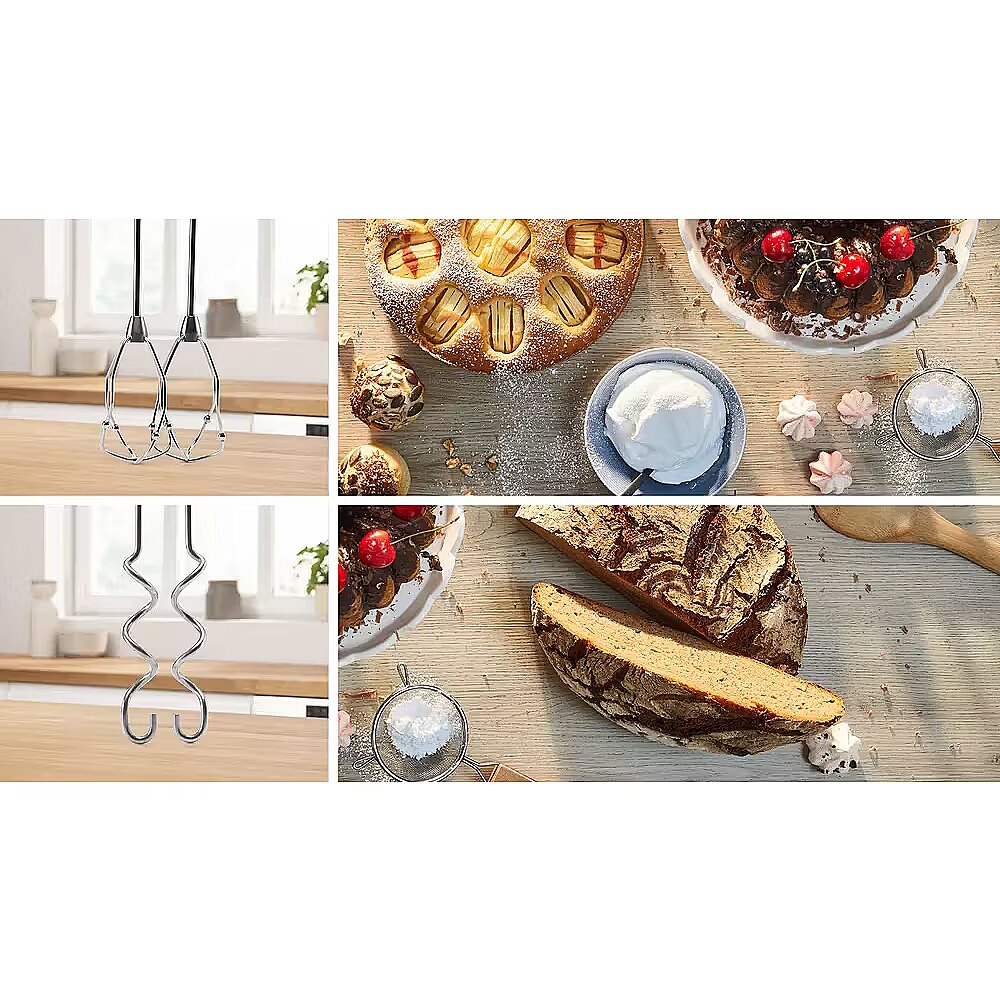 ShortSummaryDescription - Bosch MFQ49300, Hand mixer, Black, Stainless steel, White, Knead, Mixing, Stirring, 1.4 m, Lever, 850 W