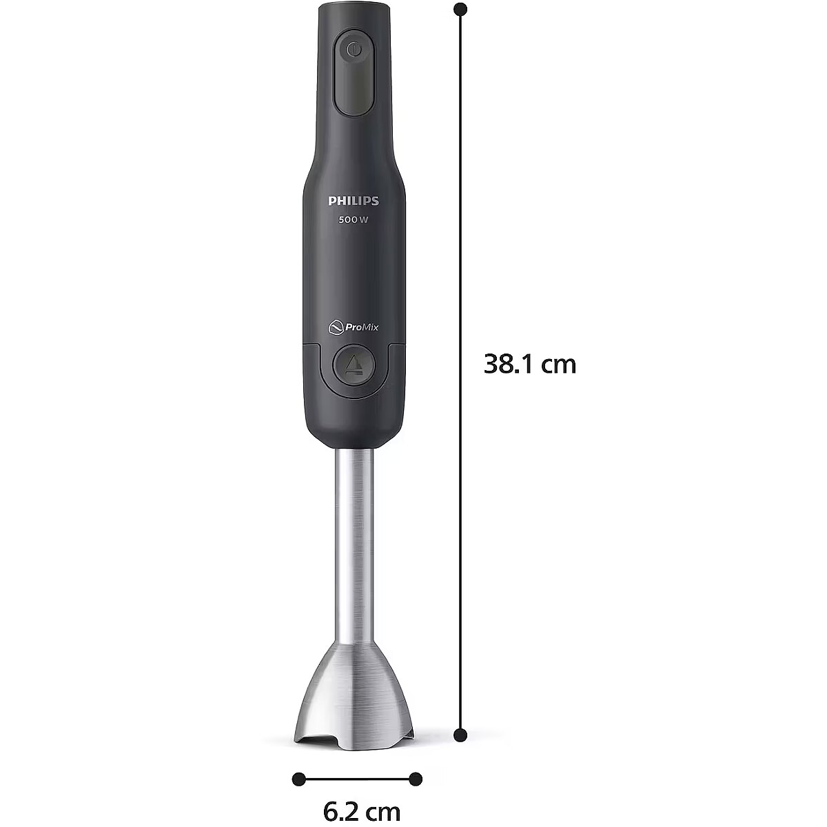 Summary - Philips 1000 series HR2522/00. Type: Immersion blender, Cord length: 1.2 m, Brand specific technologies: ProMix, SpeedTouch. Rotational speed (max): 15000 RPM. Housing material: Metal, Shaft material: Metal, Blade material: Stainless steel. Power: 500 W, Power source: AC, AC input voltage: 230 V. Width: 62 mm, Depth: 73 mm, Height: 381 mm