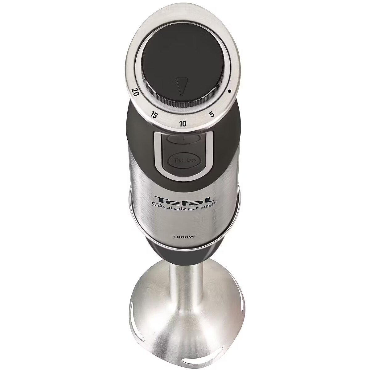 MediumDescription EN - Discover QuickChef 2 in 1, the handblender that combines power and performance. Its stainless-steel body and 1000W motor mean this unique kitchen aid is going to last you. It's equipped with a 20 variable speed dial and a Turbo function to help you blend, mix, chop and whisk any ingredients easily and efficiently. • Effortless - the Quickchef 2-in-1 electric hand blender by Tefal puts incredible smoothness at your fingertips!