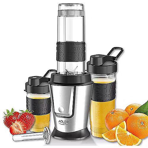 ShortDescription - Moc [W]: 500 | Stopa miksująca: stal nierdzewna |Pojemność [ml]: 570 i 400 | Akcesoria: 2 silikonowe pokrywki z ustnikiem i zawieszką