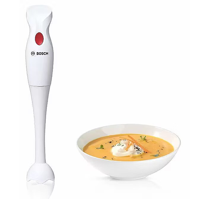LongSummaryDescription - Bosch MSMP1000. Type: Immersion blender, Product colour: White. Control type: Buttons. Housing material: Plastic. Power: 350 W, Power source: AC, AC input voltage: 220 - 240 V. Width: 61 mm, Depth: 61 mm, Height: 374 mm