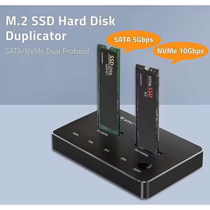 The second option is an offline copy function. All you need to do is place two drives in ports A and B, where the capacity of the B drive relative to the A drive should be greater or equal and turn on the power. Copying starts when the COPY button is held down.