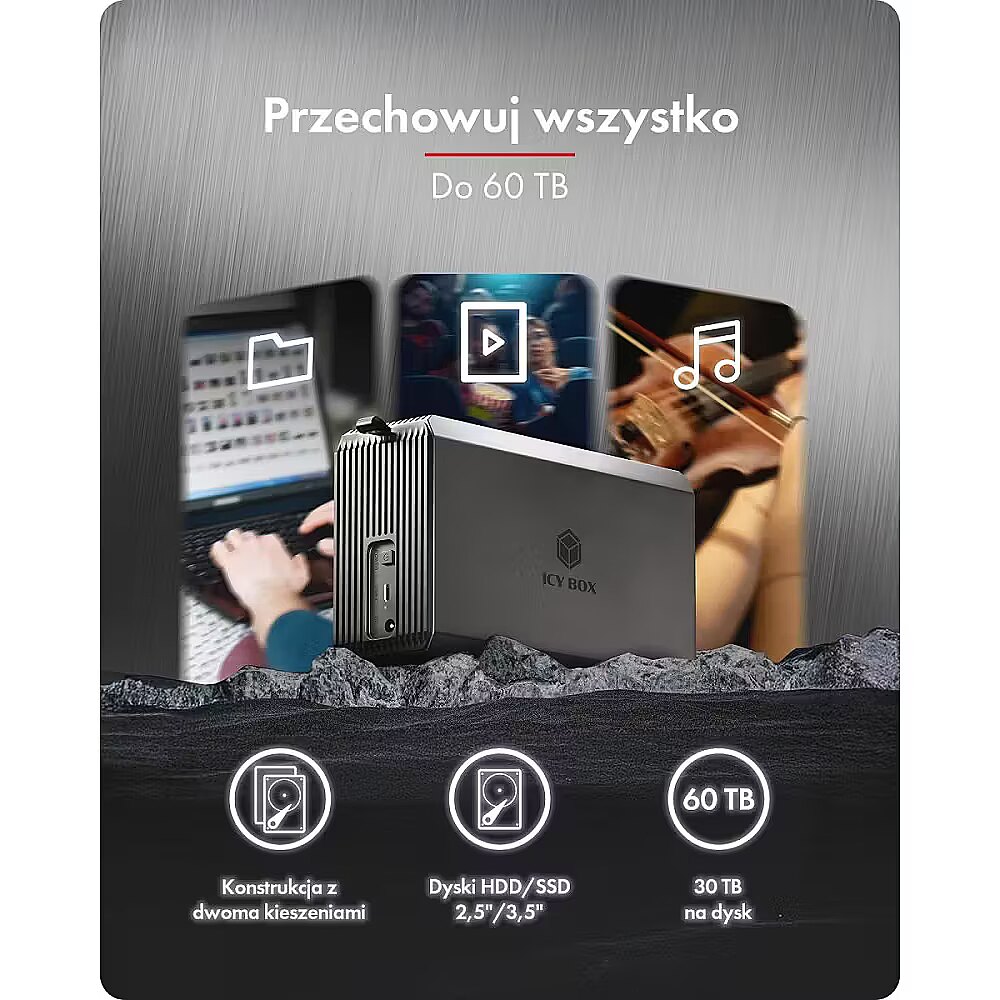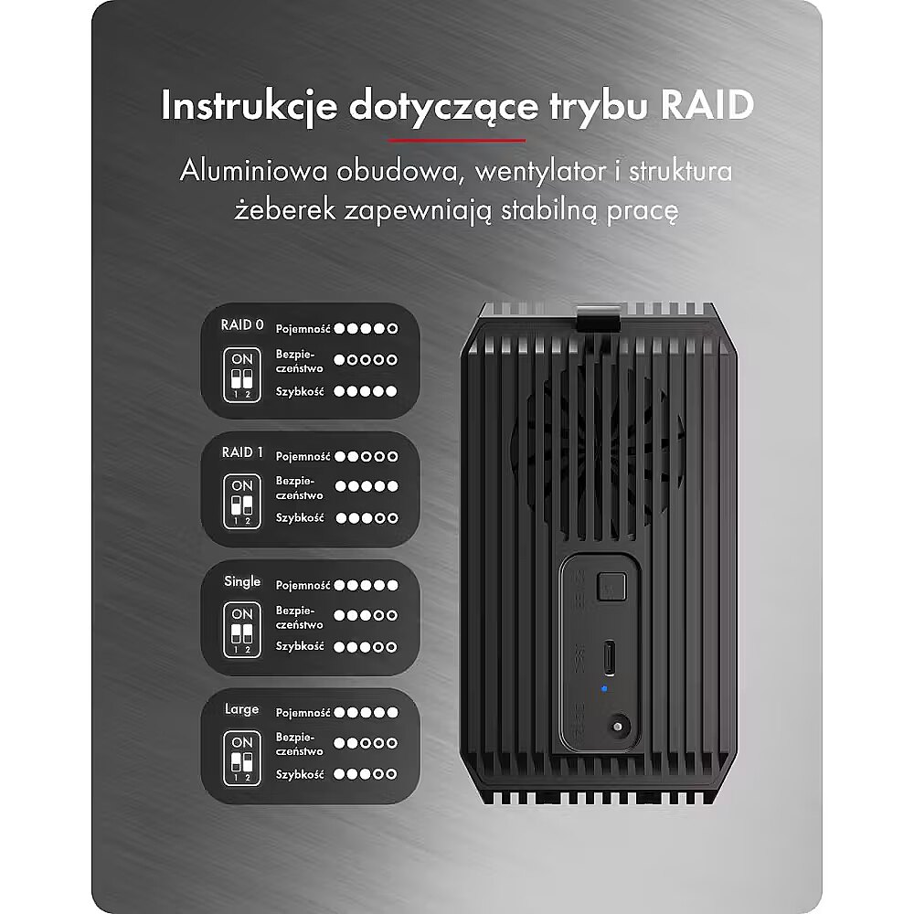 Description - RAID system for 2-bay 2.5"/3.5" SATA HDD/SSD with RAID mode switches Store it all, up to 60 TB