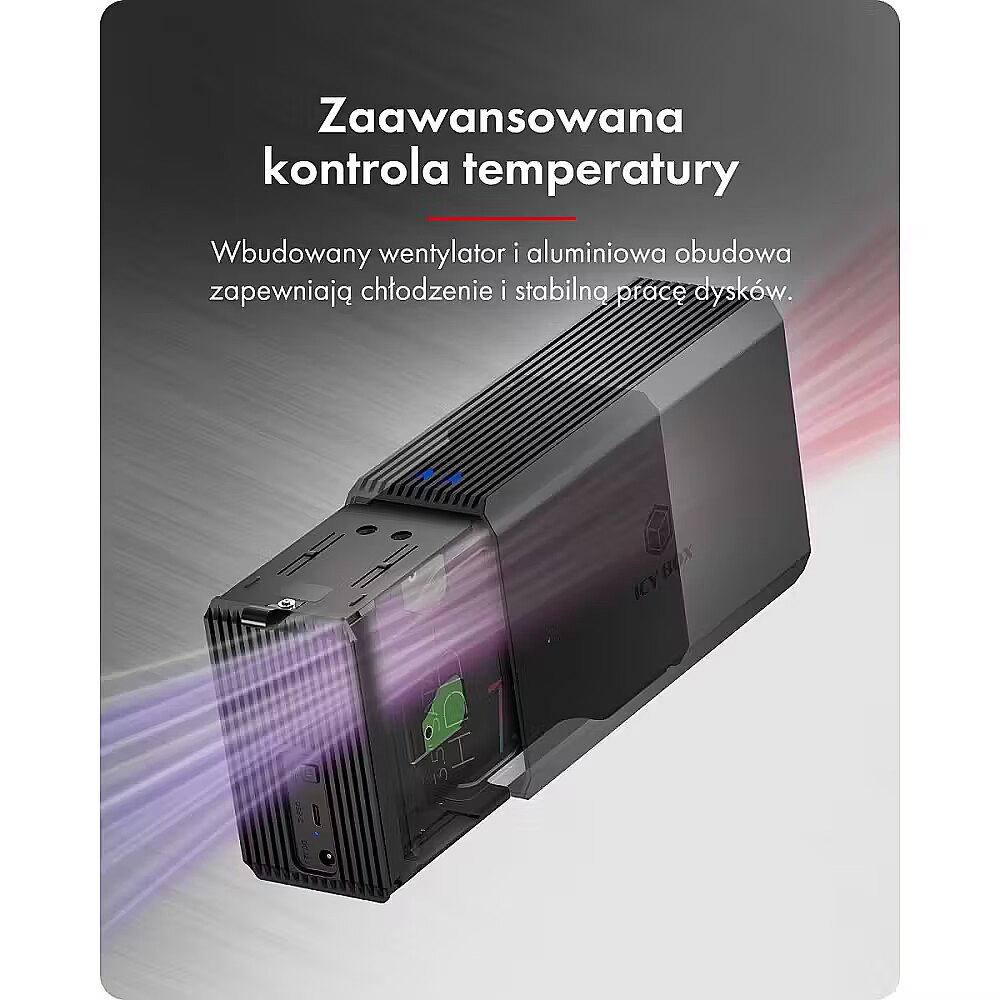 Equipped with a 50x50 mm fan, the unit maintains optimal operating temperatures even under heavy workloads. This ensures stable performance and extends drive lifespan. Fast and stable 5 Gbps performance