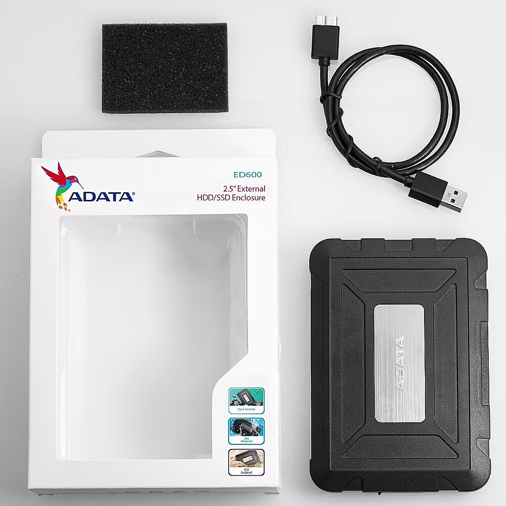 LongSummaryDescription - ADATA ED600. Product type: HDD/SSD enclosure. Number of storage drives supported: 1, Storage drive size: 2.5", Supported storage drive interfaces: Serial ATA III. Product colour: Black