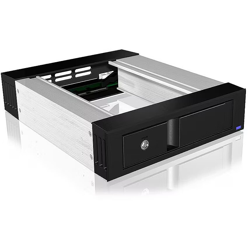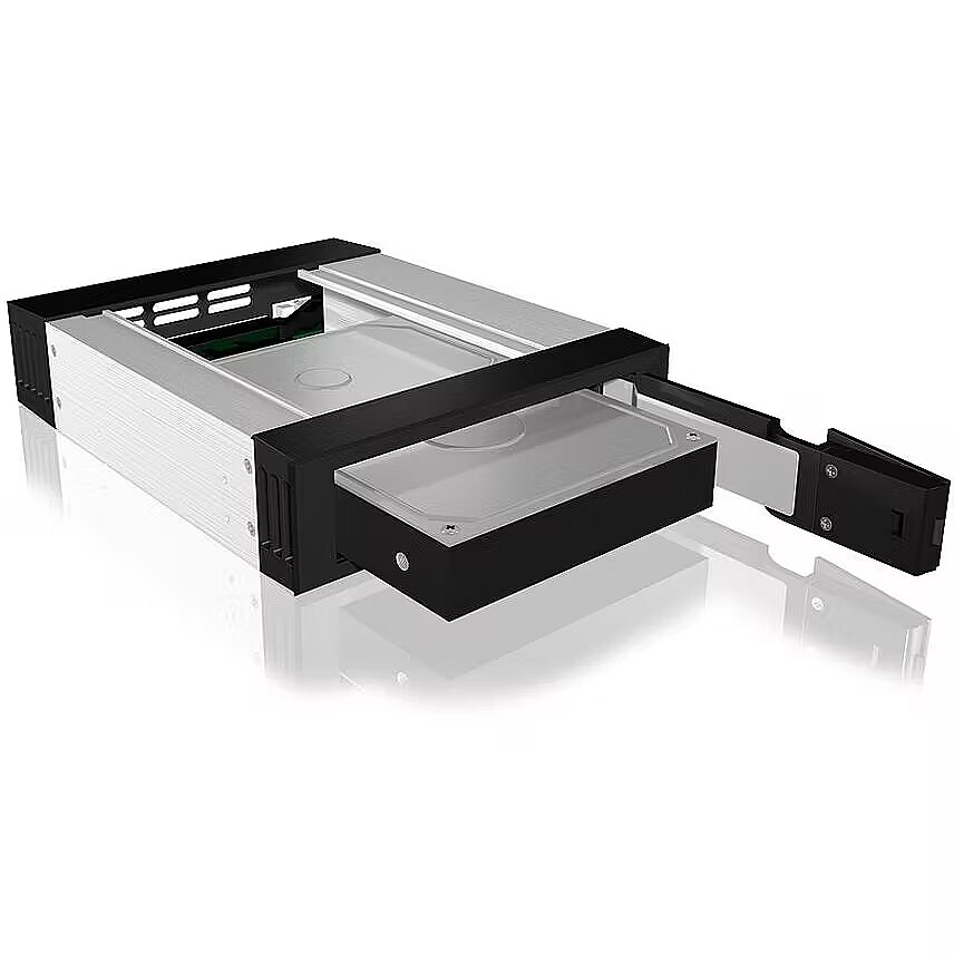 LongDesc - No tray = double the speedThe fact that the HDD does not need to be screwed to a tray makes the HDD installation much faster. A 5.25" bay is needed on the PC. SATA HDDs are supported SATA I/II/III.No fan = whisper silentThis mobile rack is made almost completely from aluminium, only the front and back panels are made of hard plastic. Aluminium is very stable, very light and on top of everything else, it dissipate heat perfectly. That is why no fan is needed in order to protect the HDDs. In case still wished, a 12V fan can be installed (not delivered in the package).No worries = lockedIn order that the HDD will stay protected at all times, a lock was added. In this way, no unauthorized person will be able to reach your data. An LED indicator provides information regarding HDD access and activity.