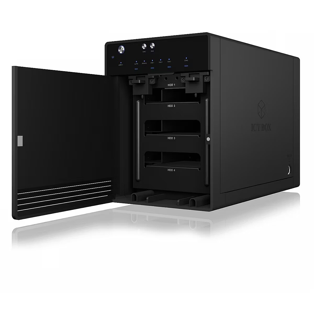 LongSummaryDescription - ICY BOX IB-3740-C31. Product type: HDD/SSD enclosure. Number of storage drives supported: 4, Storage drive size: 2.5/3.5", Supported storage drive interfaces: Serial ATA, Serial ATA II, Serial ATA III, Maximum storage capacity: 10 TB. Data transfer rate: 10 Gbit/s. RAID levels: JBOD. Product colour: Black. USB connector type: USB Type-C