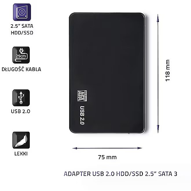 name - Hard drive adapterUSB2.0 HDD/SSD 2.5" SATA3 blac