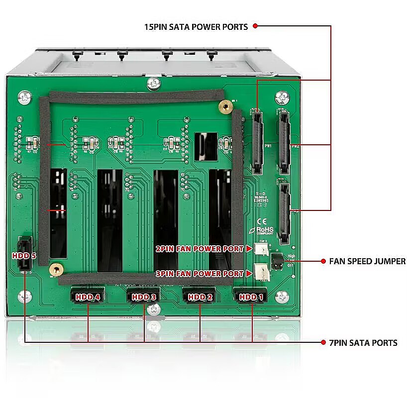 Technical_details - Introducing the FatCage MB155SP-B, a 5-in-3 SATA 6Gbps hot swappable internal RAID backplane cage. This is the lite version of the MB45X series by removing the monitoring Featuress, increasing the cooling performance, and reducing the overall cost, while keeping the same 3 year warranty and the core tray system for hot swapping and maintenance are kept for the best reliability in the market. Maximum Space Saving & Reliable Build