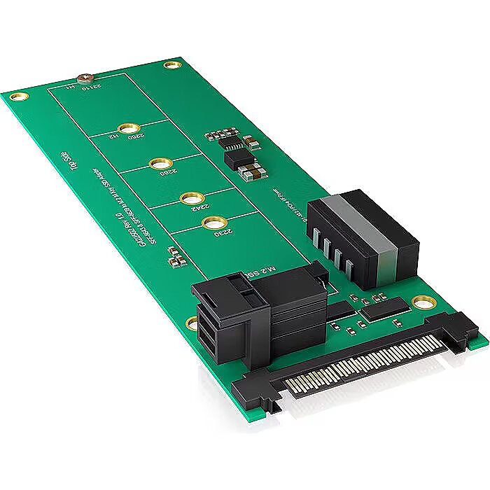 LongSummaryDescription - ICY BOX IB-M2B02. Host interface: U.2, Output interface: M.2. Product colour: Green, Country of origin: Taiwan. Data transfer rate (max): 32 Gbit/s. Width: 15 mm, Depth: 55 mm, Height: 145 mm. Package width: 25 mm, Package depth: 110 mm, Package height: 165 mm