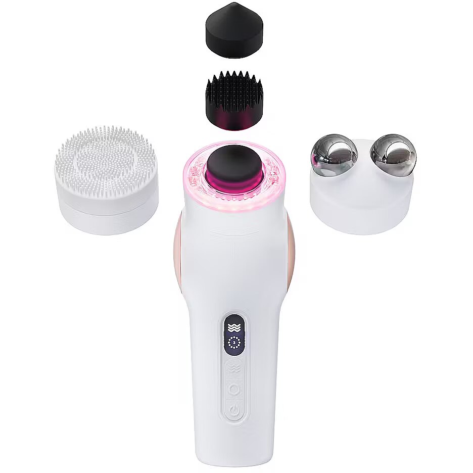 Packaging content - Packaging content - 3 Percussion Therapy Heads (Cone, Micro-point, Flat) Microcurrent Ring LED Ring (Red, Blue, and Infrared Light Therapy) Deep Cleansing Ring TheraOne Conductive Gel (50ml) Soft Case Stand USB-A to USB-C Charging Cable
