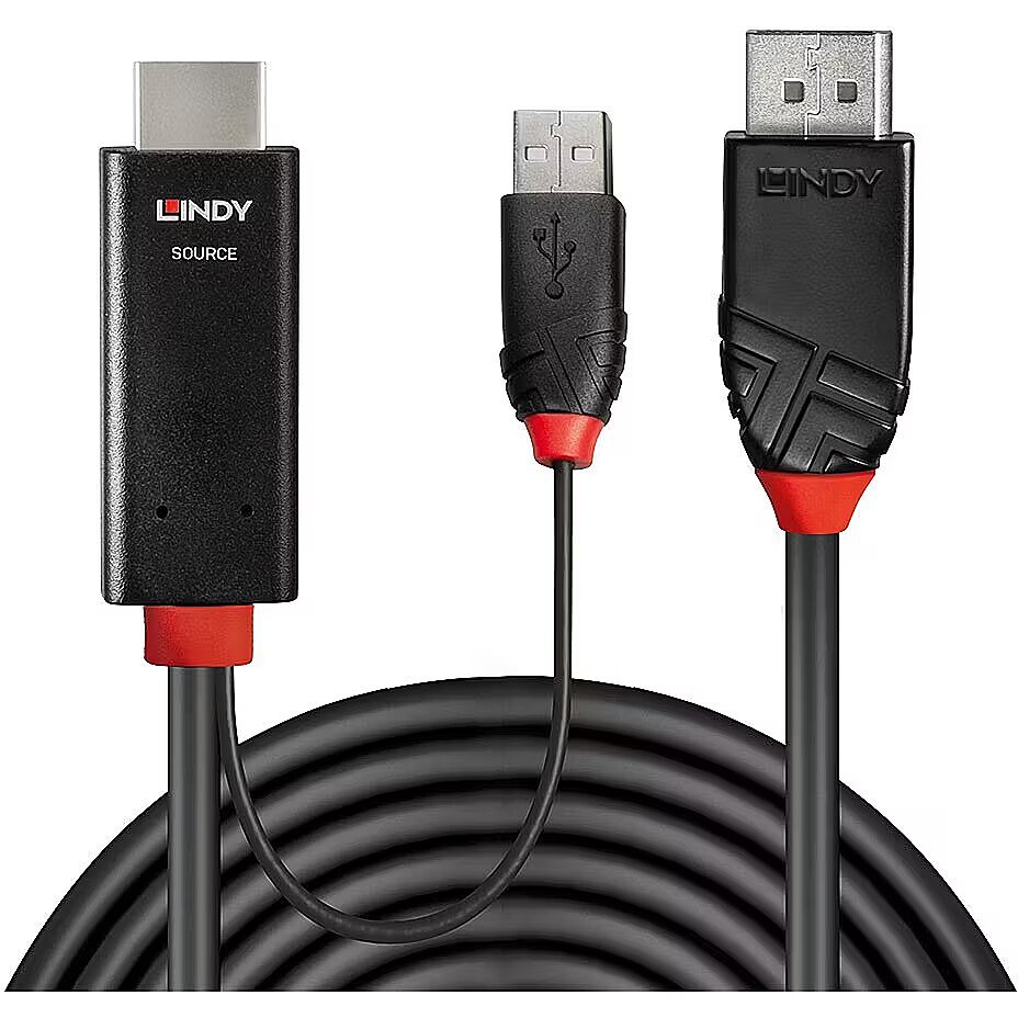 ShortSummaryDescription - Lindy 3m HDMI to DisplayPort Cable, 3 m, HDMI + USB Type-A, DisplayPort, Male, Male, Straight