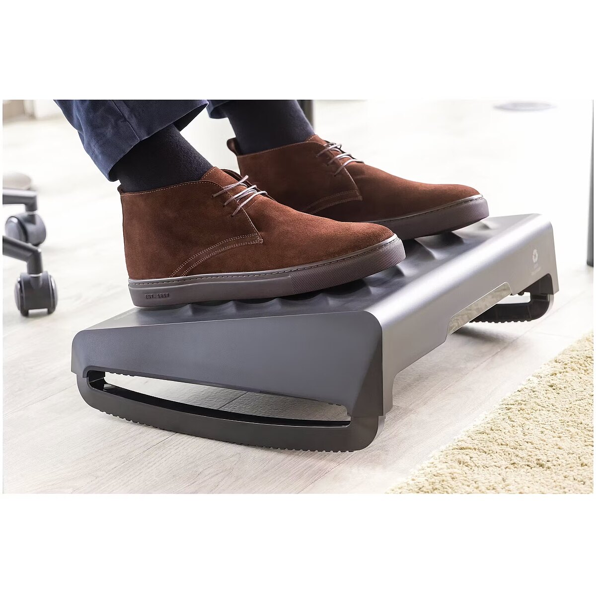 ShortSummaryDescription - Fellowes Foot Rest Under Desk - Breyta Foot Support Ergonomic Foot Rest with Textured Surface - Foot Rest Stool for Office & Home - Black, Black, ABS, 0 - 18°, 49 cm, 36 cm, 490 mm