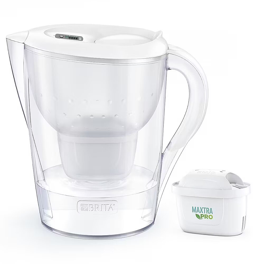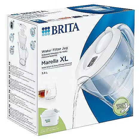 Description - BRITA Marella XL White Water Filter Jug with MAXTRA PRO Pure Performance The Ideal Water Filter Jug for Your Family The BRITA Marella XL water filter jug is the perfect solution for your household. It provides cleaner, freshly filtered water every day, so you can forget about expensive bottled drinks, making it easier to stay hydrated regularly! Continuous access to fresh, filtered drinking water. Enhanced taste for prepared foods and drinks. Reduced limescale deposits in kettles and coffee makers. Convenient refill system with a filter replacement reminder. Significant savings filtered water costs only a few cents per liter. Convenience and Functionality The BRITA water filter jug is designed for easy daily use. This ergonomic and functional product is a must-have for every kitchen. Large capacity: 3.5 liters total, with 2.0 liters of filtered water. Easy refilling: the flip-top lid opens with one hand. Dishwasher-safe (except for the lid with the electronic indicator). BRITA Memo indicator that reminds you every 4 weeks to replace the filter. Compact size fits perfectly on a refrigerator door shelf. Advanced Filtration The advanced MAXTRA PRO Pure Performance filter with innovative BRITA MicroFlow technology provides unmatched water purity regardless of hardness. Whether you want a hot coffee or a cold lemonade, youll enjoy fresh, clean water anytime. This filter enhances the natural taste of water, sure to please your taste buds. Each MAXTRA PRO Pure Performance filter lasts for up to 150 liters of water. How Does the BRITA MAXTRA PRO Pure Performance Filter Work? The BRITA MAXTRA PRO Pure Performance filter provides a four-stage filtration process: Ultra-fine mesh captures large particles from old water pipes, such as sand or rust. Natural activated carbon pearls made from coconut shells prevent chlorine, chlorinated compounds, and trace contaminants, like herbicides, pesticides, and pharmaceuticals (if present in tap water), from reaching your water. Ion-exchange pearls reduce metals like lead and copper while softening the water. Additional high-efficiency mesh achieves four times better contaminant retention than the previous MAXTRA+ filter (particle size of 30 m). Additionally, the PerfectFit mechanism ensures that all water is thoroughly filtered when using genuine BRITA cartridges. Enhance Your Kitchen The BRITA Marella XL water filter jug will elevate your kitchen experience! Youll rediscover the taste of purified tap water and enjoy better-tasting hot and cold drinks. Coffee will regain its deep aroma, and tea will be clear and vibrant. With tasty, filtered water, the meals you prepare will be even better and healthier for you and your family. Design in Two Colors The BRITA Marella XL is available in two beautiful colors, allowing you to match the jug to your preferences and your kitchens style. Choose between deep blue and pure white. The BRITA water filter jug is not only high-quality but also a stylish addition to any kitchen. Safety You Can Trust All BRITA products, including water filter jugs, have received the positive PZH Hygiene Certificate. Rigorously tested, they guarantee safe water filtration. Every sip of water from the BRITA jug is refreshing, healthy, and delicious for you and your family. Choose BRITA Filter Jugs and Protect the Planet Choosing a filter jug is an eco-friendly choice. With continuous access to fresh, filtered water, youll no longer need to buy heavy packs of bottled water, reducing plastic waste and helping protect our planet. Join us in caring for the environment.