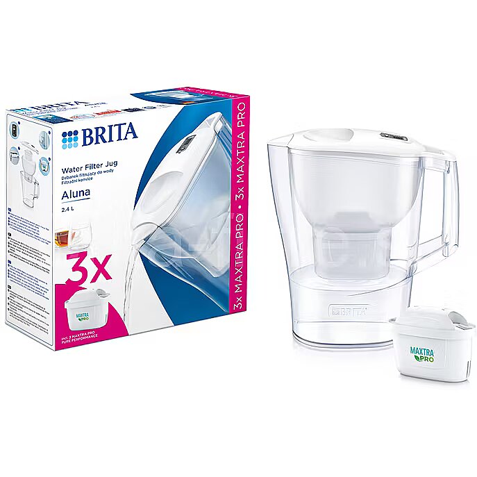 Description - BRITA Aluna Water Filter Pitcher 2.4L + 1 PRO Pure Performance Cartridge Enjoy cleaner and tastier water every day The BRITA Aluna water filter pitcher will change your life for the better. It provides you with delicious, freshly filtered water whenever you want. Moreover, with BRITA Aluna, you save moneytransforming tap water instead of purchasing expensive bottled water! You care for the environment by reducing plastic waste; You enjoy consistent quality of filtered water; You savor cleaner and fresher water, costing just a few cents per liter; Your appliances are free from limescale buildup, extending their lifespan; The pitcher is dishwasher safe (except for the lid with the indicator); It fits perfectly on your refrigerator door shelf; BRITA Aluna is certified by the National Institute of Public Health. A Solution for Your Family The water filter pitcher is the ideal solution for your family. It allows both children and adults to enjoy the fresh taste of filtered water throughout the day. For many, maintaining a healthy lifestyle and drinking at least 1.5 liters of water daily can be challengingBRITA Aluna makes it easier! The BRITA Aluna pitcher is always within reach, helping you stay regularly hydrated. Filtration is quickfresh, clean water is available whenever you desire. Discover How Simple Filtration with BRITA Aluna Is Dont worry about forgetting to replace the filterthe unique BRITA Memo indicator reminds you every 4 weeks when its time for a change. A special mechanism in the funnel ensures optimal use of MAXTRA PRO Pure Performance filters, allowing for fast and efficient filtration. BRITA filter pitchers are very easy to cleanbesides the Memo indicator, all parts can be washed in the dishwasher. Millions of Polish families have already discovered BRITAs innovative solutionsjoin them and filter your water with the Aluna pitcher. Savor Fresh, Filtered Water The BRITA Aluna water filter pitcher offers benefits that fresh, filtered water brings to your family: Better taste in every cup of tea; Coffee with a rich aroma; Delicious, healthy meals free from harmful heavy metals; Reduced limescale buildup and longer-lasting appliances. Thorough Filtration Thanks to the advanced MAXTRA PRO Pure Performance water filter with innovative BRITA MicroFlow technology, the pitcher ensures unparalleled water purity, regardless of hardness. Whether you crave hot coffee or cool lemonade, you can enjoy clean, fresh water any time of day. With this filter, you'll discover the true taste of water that will delight your taste buds. The MAXTRA PRO Pure Performance filter is sufficient for filtering 150 liters of water. How Does the BRITA MAXTRA PRO Pure Performance Filter Work? Filtration through BRITA MAXTRA PRO Pure Performance is a 4-stage process: Super fine mesh: Traps large particles from old water pipes, like sand or rust. Natural activated carbon pearls, made from coconut shells, prevent chlorine and its derivatives, as well as trace contaminants like herbicides, pesticides, and pharmaceutical residues (if present in tap water) from passing through. Ion exchange pearls reduce metals such as lead and copper and soften the water. An additional high-efficiency filter mesh ensures 4x better pollutant retention compared to the previous MAXTRA+ filter. Additionally, the PerfectFit mechanism guarantees that all water is thoroughly filtered when using original BRITA cartridges. With BRITA Aluna, You Care for Our Planet Using water filter pitchers is an excellent way to reduce plastic usage. Say no to expensive bottled water contained in single-use plastic. By using BRITA Aluna, youre helping the environment. Rememberif we want to change our planet, we must start with ourselves! Give BRITA Filters a Second Life! By using original BRITA filter cartridges, you can care for the environment and join the #RecyclingWithBRITA club. This is a special collection program for used cartridges launched by BRITA. Thanks to this, the filters get a second life! Collect 6 used MAXTRA PRO or MicroDisc cartridges and send them to BRITA Polska in return, youll receive a new cartridge! To learn more, visit brita.pl. Give BRITA Filters a Second Life!