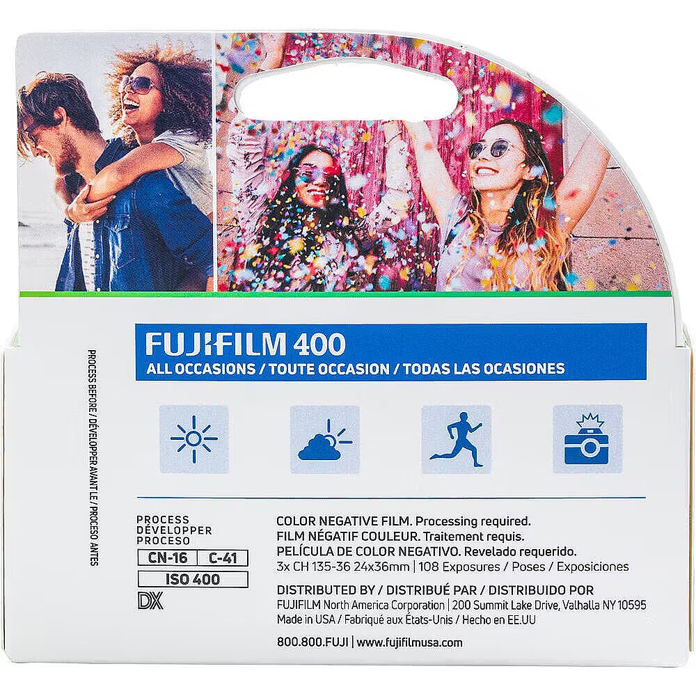 description_en - Fujifilm 400 is a versatile colour negative film with a sensitivity of ISO 400, which makes it suitable for use in a variety of lighting conditions, from bright sunlight to low light environments. This film is designed to produce vibrant and true-to-life colours with a fine grain, making it a popular choice for both amateur and professional photographers. It has a wide exposure latitude, meaning it is forgiving of slight under- or over-exposure, making it a reliable choice for a range of shooting scenarios. Colour negative film 35 mm roll ISO 400 medium sensitivity 36 frames, 3 rolls Standard C-41 process