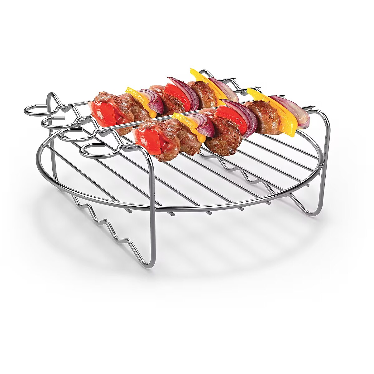 MediumDescription EN - Add a cooking level to your Easy Fry XXL! Add a cooking level to your Easy Fry XXL with a cake barrel, a pizza pan, a skewers rack and a metal holder. These 4 accessories (8" inches) are compatible with Easy Fry XXL EY701D & EZ701D, ensuring healthy cooking the whole family will enjoy - tasty, flavorful results using hot air. • Less oil and less fat