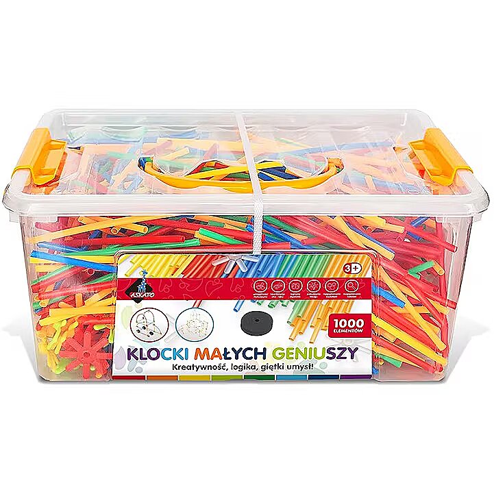 Description - Blocks for Little Geniuses - Little straws Blocks - sticks which, with the help of crosses, can be combined into various figures. 238 pieces in various colours. Stick-straw measuring 10x0.3 cm.