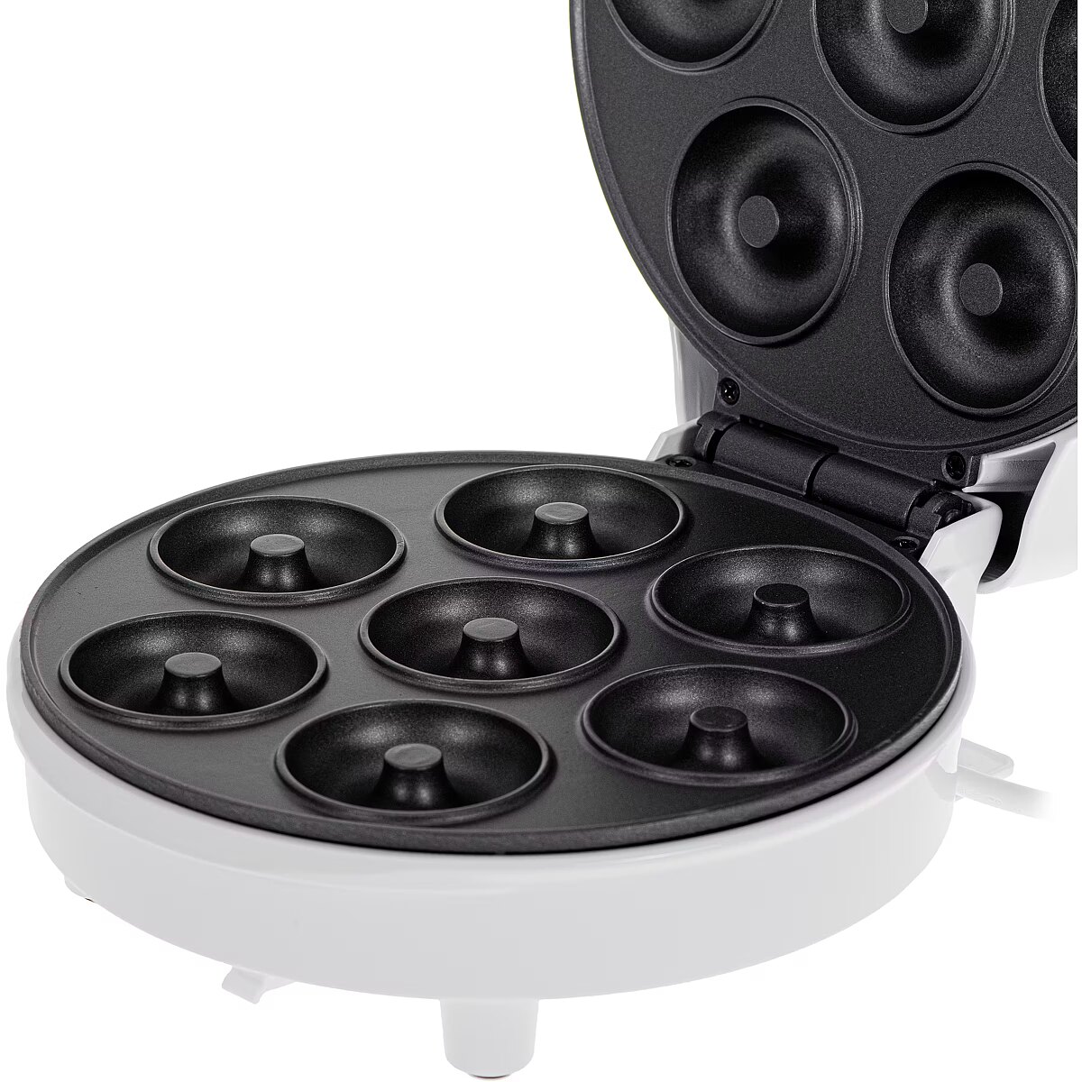 Technical details > Other features - Bakes 7 donuts at one time; Non-stick heating plates; Cool touch handle; 2 control lights for power and baking