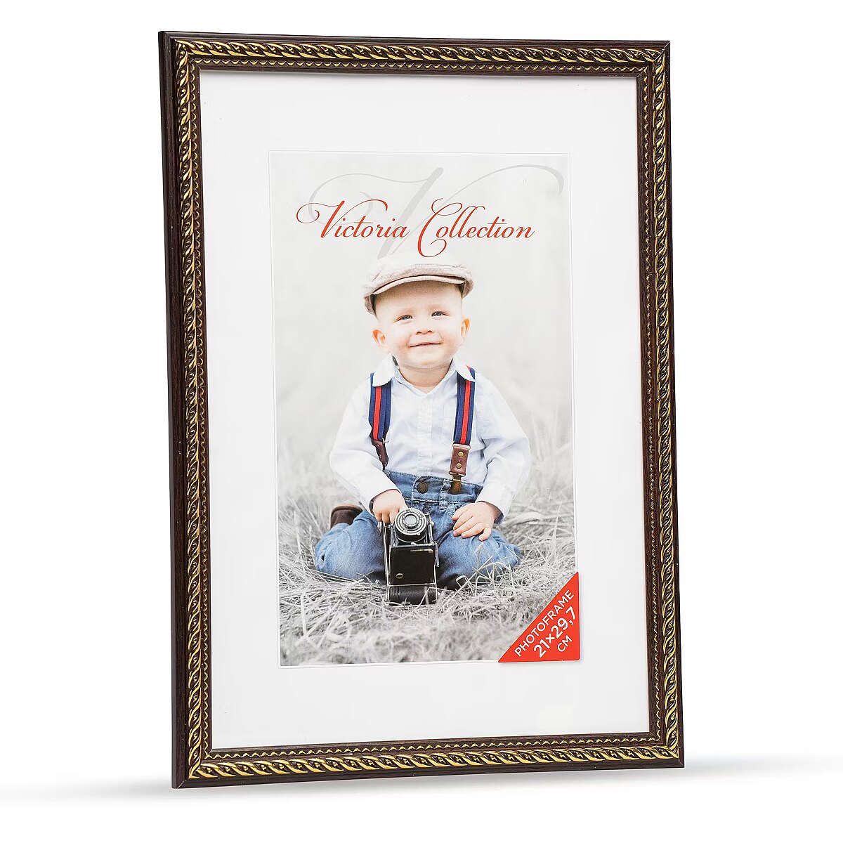 description_short_en - High quality Victoria Collection photo frame Plastic frame with a luxurious golden pattern Wall hanging loops Kickstand for placing on a desk For a 21 × 29.7 cm / A4 photo