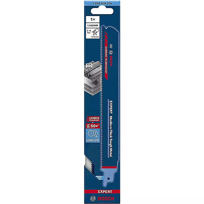 LongDesc - EXPERT Thick Tough Metal for Long Life Cutting Thick Tough MetalCutting thick metal such as steel profiles or heavy cast iron pipes is probably not the favourite part of your job. Plumbers, renovators and demolition workers alike know that this is a tough task which, even with a powerful recip saw, requires sweat and muscle. The EXPERT ‘Thick Tough Metal’ not only cuts thick metal, it offers exceptional lifespan in the toughest of applications.With the Bosch EXPERT ‘Thick Tough Metal’ Reciprocating Saw Blade, you might just start to enjoy cutting thick steel and cast iron.